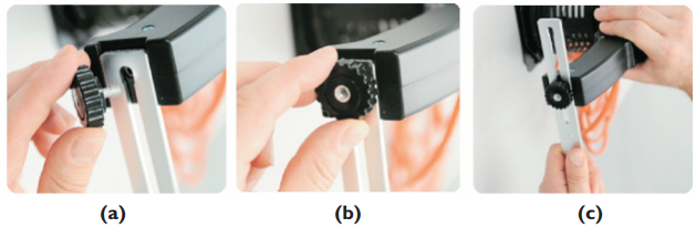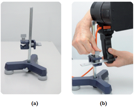Üçgen ayaklı destek çubuğu (a) ve halojen lambanın destek çubuğuna takılması (b)