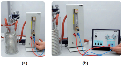 Güç kaynağında akım ve voltaj ayarı (a) ve sirkülasyon pompasının çalıştırılması (b)