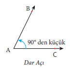 Ölçüsü 0˚ ile 90˚ arasında olan bir açıya dar açı denir.