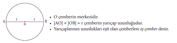 Düzlemde sabit bir O noktasından eşit uzaklıkta bulunan bütün noktaların kümesine çember denir. Sabit O noktasına ise çemberin merkezi ve çember üzerindeki herhangi bir noktayı merkeze birleştiren doğru parçasına çemberin yarıçapı denir. Çemberin yarıçapının uzunluğu genel olarak r ile gösterilir.
