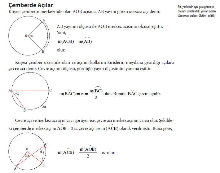 Çemberde hangi açılar bulunmaktadır