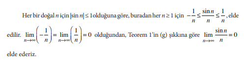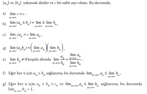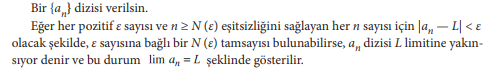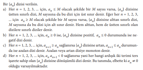 b) {an} azalan ve alttan sınırlı bir dizi ise, yakınsaktır.