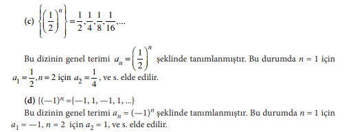 {(—1)n} = {—1, 1, —1, 1, ...}dizisi dönüşümlü ve sınırlı bir dizidir, bütün terimleri