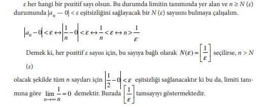 an = 1/n dizisinin limitinin sıfır olduğunu gösteriniz.