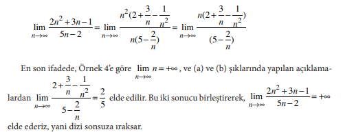 c) {an} artan ve üstten sınırlı değilse, ıraksaktır.