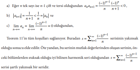 serisi yakınsak olup fakat mutlak yakınsak değilse bu seriye şartlı yakınsak