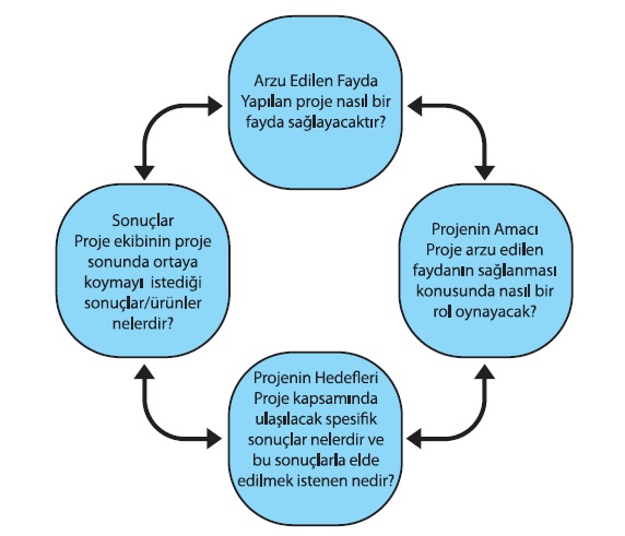 İyi tasarlanmış bir projenin fayda, amaç, hedefler ve sonuçlar ilişkisini şekil üzerinde nasıl gösterebiliriz?