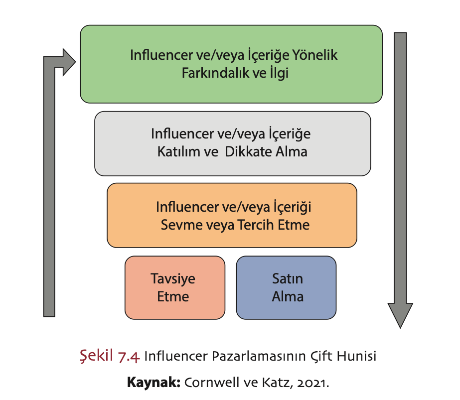 Influencer pazarlaması, sosyal medya ile med- yanın çeşitlenmesi ve izleyici seçiciliğinin artması ile birlikte ortaya çıkmıştır. Dolayısıyla influencer pazarlaması, pazarlama karmasında iletişim kanalı olarak sosyal medya influencerlarını kullanmaya odaklanmaktadır. İşletmeler, influen- cerlar aracılığıyla daha büyük ve daha spesifik kitlelerle iletişim kurarlar