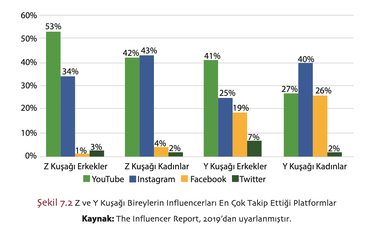 Z ve Y Kuşağı Bireylerin Influencerları En Çok Takip Ettiği Platformlar hangileridir?
