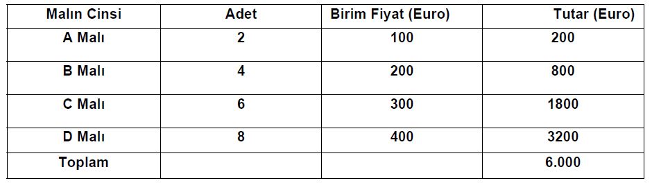 • 4 değişik malın FOB tutarı 6.000 Euro’dur