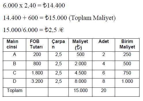 Yaşam A.Ş. tarafından yapılan ithalat işlemine ait bilgiler aşağıda gibidir. Bu işlemde belirtilen A, B, C ve D ürünlerinin birim maliyetlerini hesaplayınız?