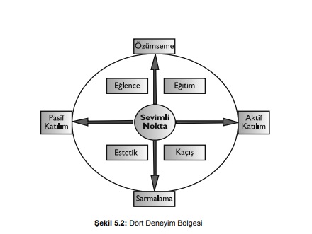 Eğlence alanı olaya pasif katılımı kapsar. Bu olgu sanat deneyimine de büyük paralellik göstermektedir. Sanat pazarlaması eğlenceyi performansın veya sanatın içerisine katarak sanat ve eğlenceyi kombine etmiş olur. Bu durum müzik konserlerinden sanat galerilerine kadarki yelpazede yer alan sanat ürünleri için farklı düzeylerde uygulanabilir