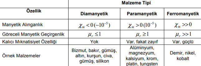 Manyetik malzemelerin karakteristiklerini özetleyiniz.