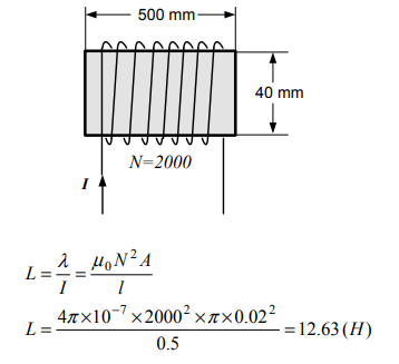 2000 sarımlı, 500 mm uzunluğunda, 40 mm çaplı solenoid, kağıt bir tüp üzerine sarılmıştır. Solenoidin endüktansını hesaplayınız.
