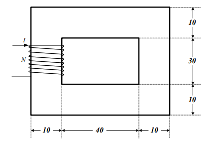 Şekilde verilen manyetik devrenin ortalama akı yolunun uzunluğunu hesaplayınız. Ölçüler cm olarak verilmiştir.
