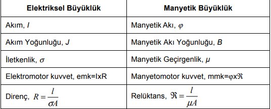 Elektriksel büyüklükle manyetik büyüklüğü karşılaştırınız.
