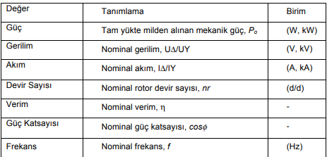 Bir asenkron motorun etiketinde hangi bilgiler bulunur?