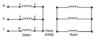Transformatörlerde primer sargıdan sekonder sargıya güç transferi manyetik nüve üzerinden gerçekleşir. Asenkron motorlarda is primer statordan rotora transfer edilen güç stator ile rotor arasındaki hava boşluğu üzerinden gerçekleşir. Şekilde üç fazlı yıldız bağlı sargılı rotorlu bir asenkron motorun modeli görülmektedir.