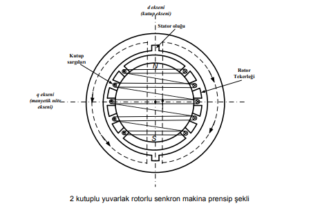 b. Yuvarlak rotorlu senkron makinalar.