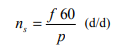 2p kutuplu, stator sargılarına f frekanslı gerilimler uygulanmış bir statorda elde edilen senkron hız (döner alan hızı) hangi formülle hesaplanır?