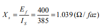 XS : Stator bir faz reaktansı.