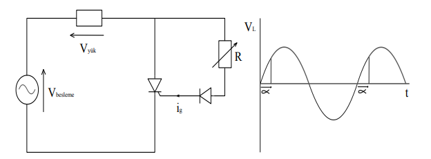 Yukarıdaki devrede yük gerilimi kontrol edilmektedir. Ig ≅ Vbesleme/ R kapı akımının değeri R’ye bağlı olduğundan tetikleme açısıα∝ her periyot değişebilir, tristörün sıcaklığına ve diğer değişimlere bağlı olarak. Ayrıca tam sıfır ve tam 900 ’de tetikleme yapılamaz. Dolayısıyla bu devre pratikte kullanılmaz