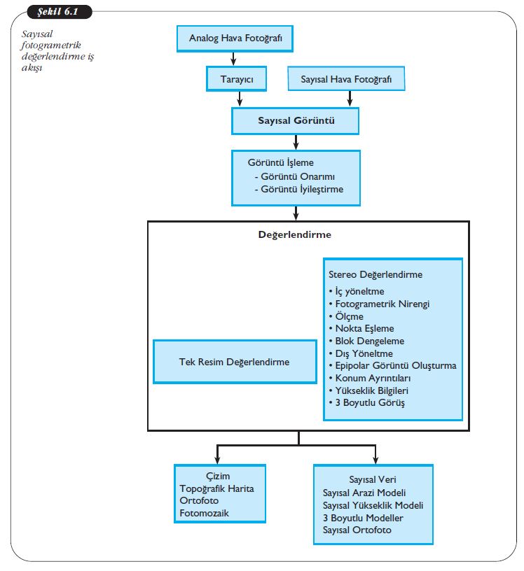 Sayısal (dijital) fotogrametrik değerlendirme iş akışı aşağıdaki şemada görülmektedir.