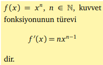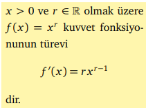 limiti varsa bu limit değerine f(x) fonksiyonunun x0 noktasında türevidir deriz. Türev için