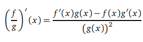 f ve g fonksiyonları x noktasında türevlenebilir olsunlar ve bölümden bahsedebilmek için g(x), sıfırdan farklı olsun.