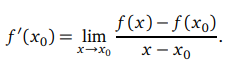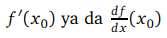 Belirli bir x0 noktasındaki türevi şöyle de tanımlayabiliriz: