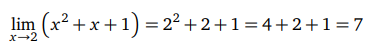 f(x) = x2 + x + 1 fonksiyonunun x0 = 2 noktasındaki limitini hesaplayalım.