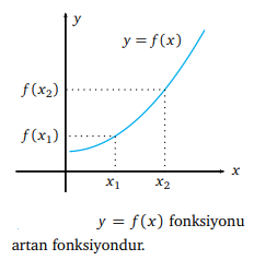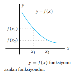 Bir f (x) fonksiyonunun tanım kümesinden alınan keyfi x1, x2 noktaları için x1 < x2 iken f (x1) < f (x2) oluyorsa f (x) fonksiyonuna artan fonksiyon; eger, x1 < x2 iken f (x1) > f (x2) ise bu durumda da f (x) fonksiyonuna azalan fonksiyon denir.