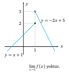 Fonksiyonun grafiğinden de görüleceği gibi x sayısı 2 değerine yaklaşırken, fonksiyonun aldığı değerler de fonksiyonun x = 2 noktasında aldığı değere yani 7 sayısına yaklaşacaktır.