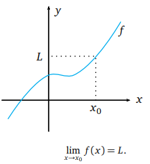 x değişkenini x0 dan farklı değerlerle, her iki yandan da x0 noktasına yeteri kadar yaklaştırdığımızda, f(x) fonksiyonunun alacağı değerler bir L sayısına yeteri kadar yaklaşıyorsa, o zaman bu L sayısına f(x) fonksiyonunun x0 noktasındaki limitidir deriz. Sembolik olarak