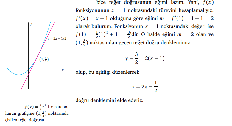 parabolüne x = 1 noktasında teğet olan doğru denklemini yazalım