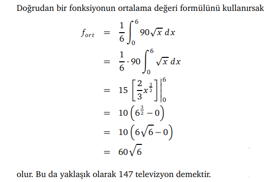 fonksiyonu ile veriliyor. İlk 6 ay sonunda, ayda ortalama kaç televizyon satılmıştır?
