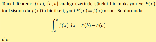 Bir fonksiyonun belirli integrali o fonksiyonun bir ilkeli yardımıyla kolayca hesaplanabilir.