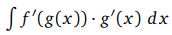 integralinde, iki tane fonksiyon türevi ve bileşkeler olduğu için, Verilen integralde u=g(x) denilirse u’nun diferansiyeli du = g'(x) dx olur, bunları