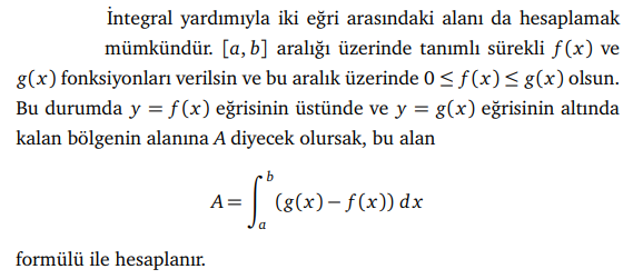 İntegral yardımı ile iki eğri arasındaki alan nasıl hesaplanır?