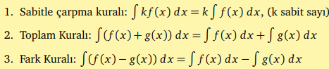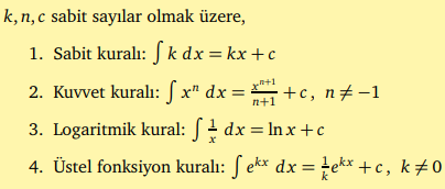 Belirsiz İntegral için geçerli olan kurallar nelerdir?