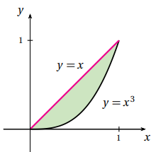 0 ≤ x ≤ 1 olmak üzere y = x doğrusunun altında ve y = x3 eğrisinin üstünde kalan bölgenin alanını hesaplayınız.
