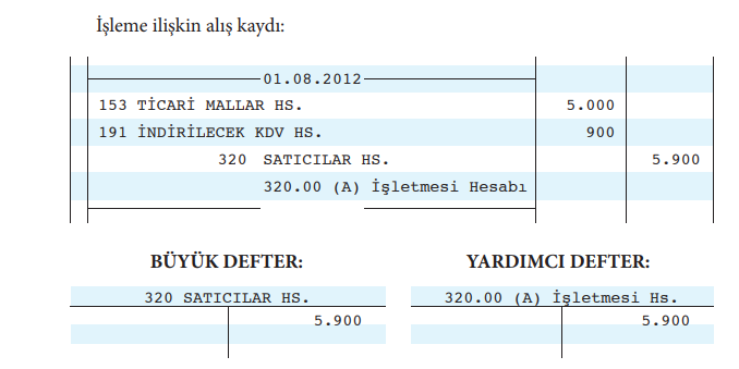 İşletme, 1 Ağustos 2012 tarihinde A İşletmesinden 5.000’liraya 31 gün vadeli olarak mal satın almıştır. Alış işlemine ilişkin KDV oranı %18 olup KDV bedeli de vade tarihinde ödenecektir.