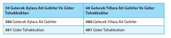 38 Gelecek Aylara Ait Gelirler ve Gider Tahakkukları