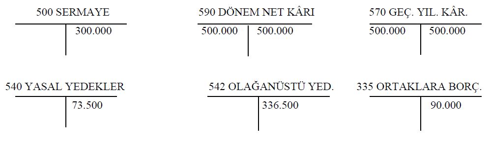 Ödenmiş Sermayesi 300.000 TL, cari döneme kadar ayrılmış yasal yedekleri 20.000 TL, dönem net kârı 500.000 TL olan bir sermaye şirketi; I. ve II. Tertip Yedek Akçe ayırmakta, I.Temettü ve 75.000 TL II.Temettü dağıttıktan sonra kalan kârı olağanüstü yedeklere almaktadır. Ayrılacak yedek akçe ve I.Temettü tutarının muhasebe kayıtları nasıl yapılacaktır?