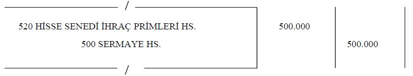 TTK tarafından yedek akçe olarak nitelendirilen bu fark, meydana geldiğinde 520 Hisse Senedi İhraç Primleri hesabı alacaklandırılır. Bu farkın sermayeye eklenmesi veya başka bir amaçla kullanılması durumunda ise hesaba borç kaydedilir.