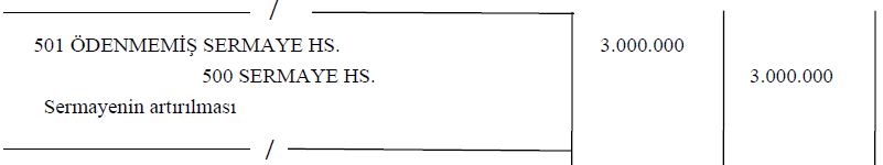 (Y) A.Ş. 12.000.000 TL olan sermayesini 1/4 oranında artırmaya karar vermiş ve çıkardığı hisse senetlerini borsada oluşan fiyat üzerinden banka aracılığıyla satmıştır. Banka bu satış işlemiyle ilgili olarak 60.000 TL komisyon vb. gider kestiğini ve satış bedeli olarak hesabımıza 4.000.000 TL’ nin işlendiğini bildirmiştir. Bu bilgilere göre sermaye artırımının muhasebe kaydı nasıl yapılır?