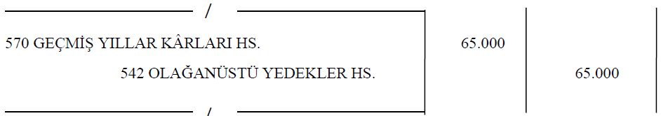 Şirket Genel Kurul’u, geçmiş yıllar kârlarındaki 65.000 TL’nin olağanüstü yedek olarak ayrılmasına ilişkin öneriyi kabul etmiştir. Bu durumun muhasebe kaydı nasıl yapılacaktır?