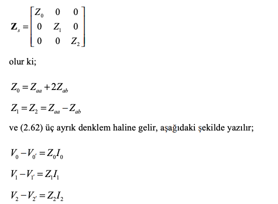 Zs matrisinin dengeli ve Y bağlı yük için köşegen tipte olmasının sonucudur.