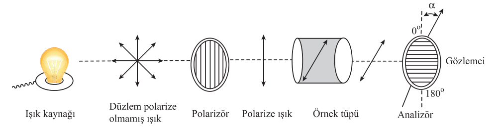 enantiyomerlerin herbirinin içinden düzlem polarize ışık geçtiğinde her bir enantiyomer farklı yönde fakat eşit miktarda düzlem polarize ışığı çevirirler.