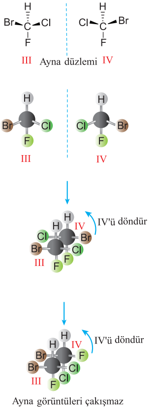 Bromokloroflorometan bileşiğinin ayna görüntelerinin çakışıp çakışmadığını gösteriniz.